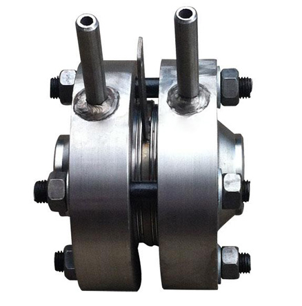 4.取壓法蘭與管道焊接前,應先將管道上的取壓孔鉆好,其直徑與取壓法蘭上的取壓孔徑相同,焊接時取壓法蘭上的取壓孔與管道上的取壓孔對準。